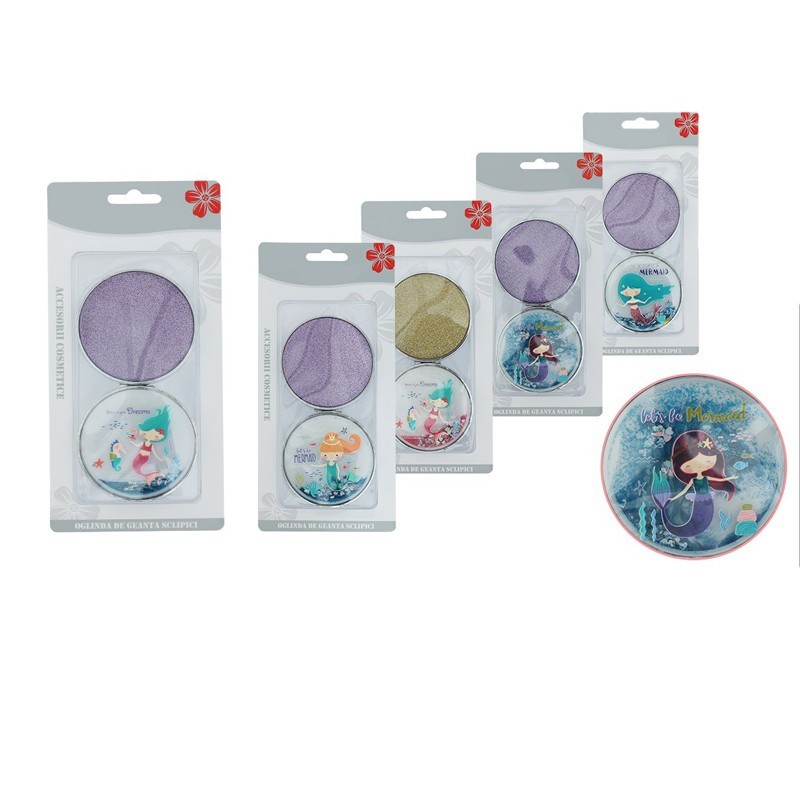 Oglinda de buzunar, cu sclipici, compacta, diverse imprimeuri