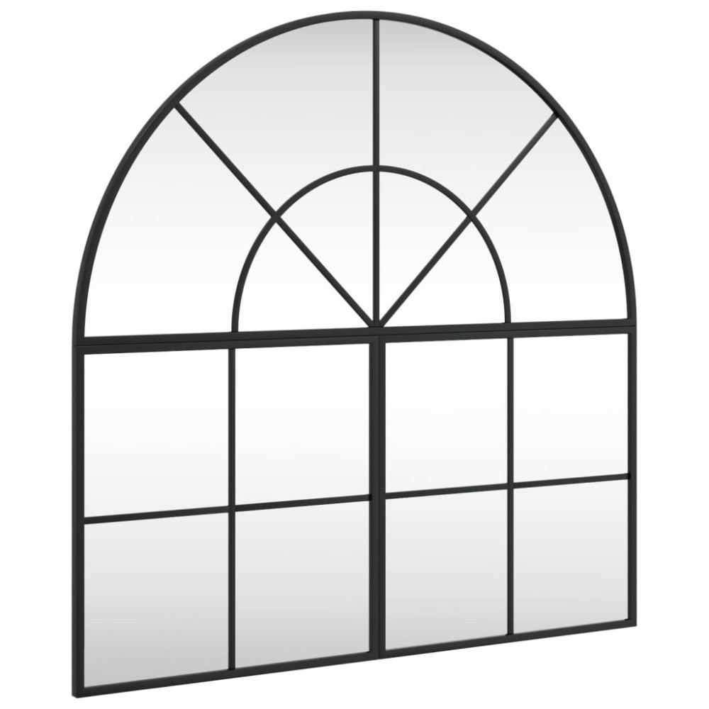 Oglinda de perete, negru, 80x80 cm, arcuita, fier