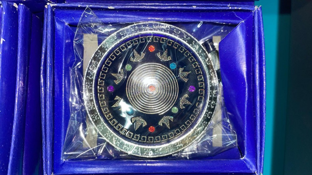 Oglinda de poseta, rotunda, albastra cu pietre 4