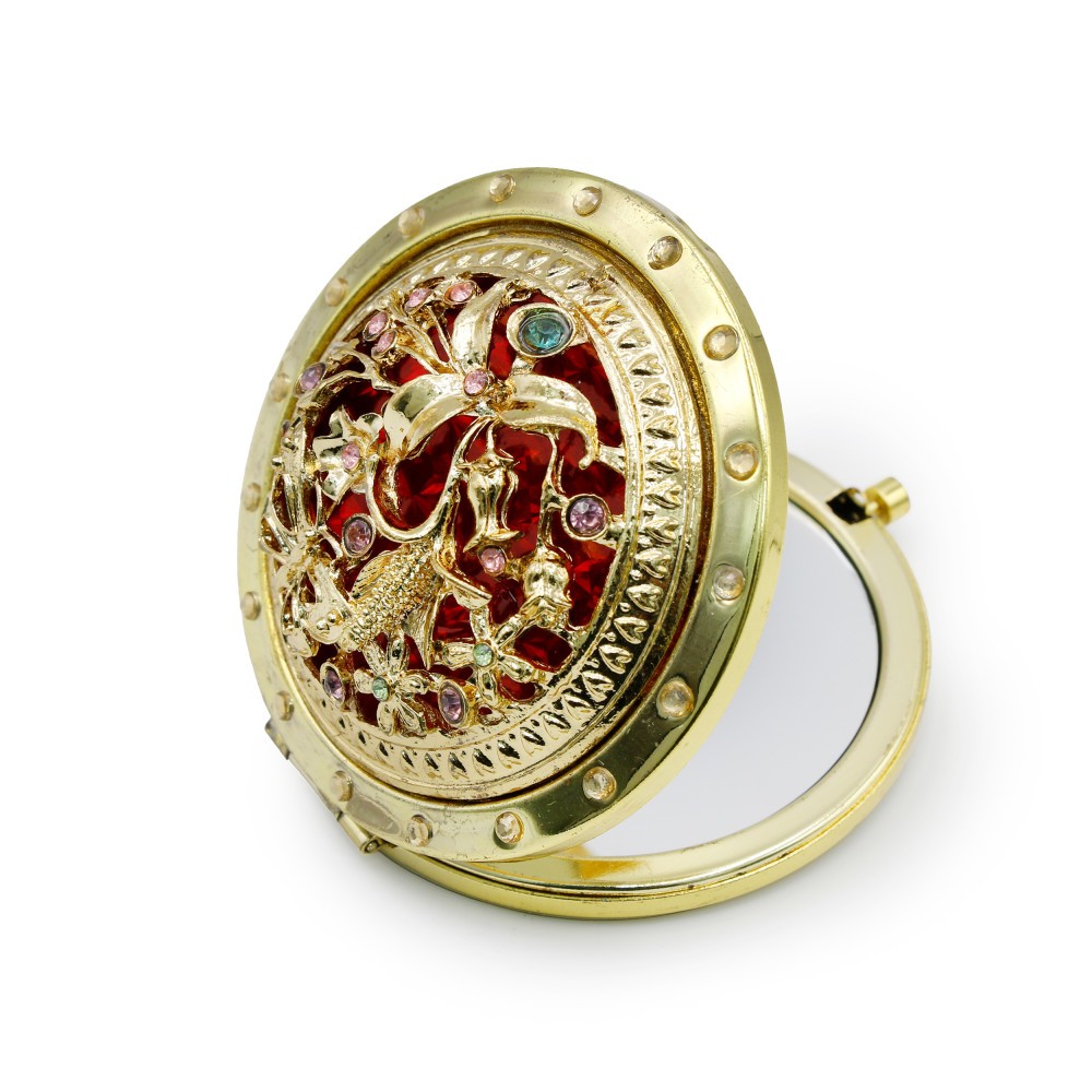 Oglinda de poseta, rotunda, pietre floare, aurie 19