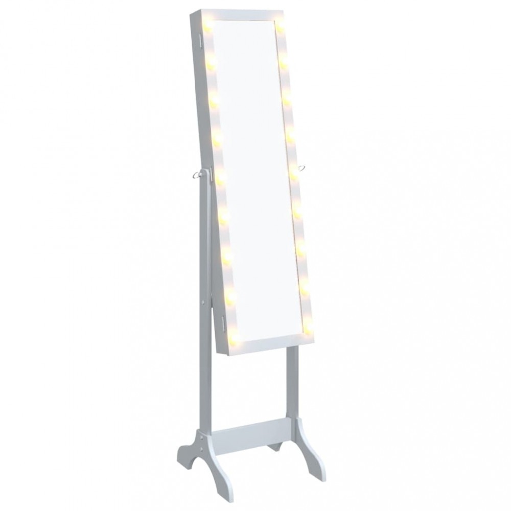 Oglinda de sine statatoare cu LED, alb, 34x37x146 cm