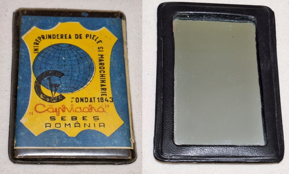 Oglinda & reclama Intreprinderea de piele Caprioara, produs romanesc, anii 1970, era socialista