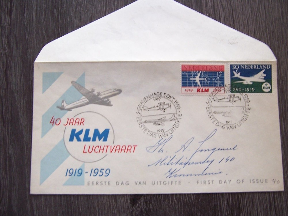 Olanda 1959 FDC ANIVERSARE KLM - 40 DE ANI