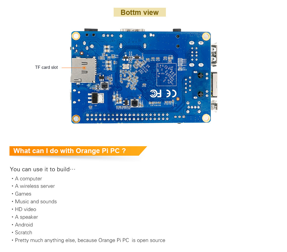 Orange Pi PC H3 Quad-core Mali400MP2 GPU 1GB DDR3