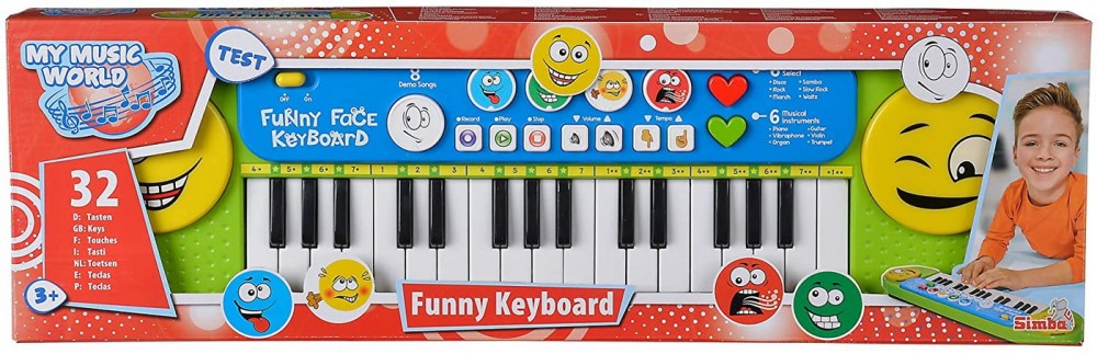 Cu acesta orga muzicala si amuzanta My Music World, micii compozitori pot avea prima lor experienta de a face muzica. Tastatura amuzanta are 32 de taste, 8 demonstratii muzicale, 6 ritmuri si 4 zgomote amuzante, cum ar fi burping sau ras.