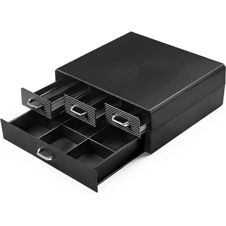 Organizator capsule cafea, PROCART, 4 sertare depozitare, 2 nivele, negru