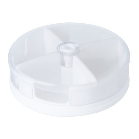 Organizator Pastile, Zamo®, Dimensiune 80x80x30mm, 4x Compartimente, Rotund, cu Dozator, Culoare Alb