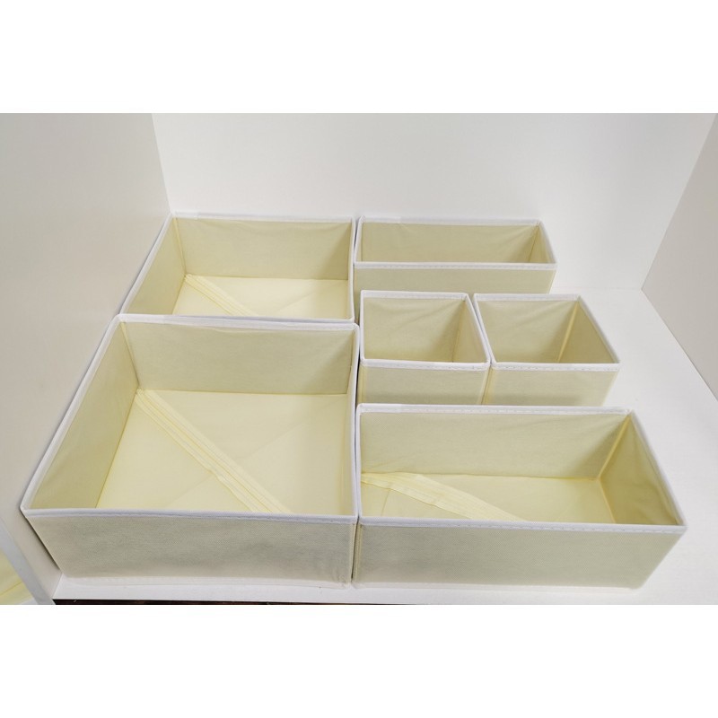 Organizator sertar pentru lenjerie intima, tip cutie cu partitii, set 3 in 1, 6 piese, bej cu margini albe