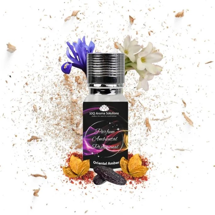 Oriental Amber este un parfum ambiental de camera din uleiuri esentiale, creat pentru a evoca o senzatie de mister si senzualitate orientala. Aceasta aroma incepe cu o nota puternica de Tutun si Note Condimentate, care adauga o nota de mister si senzatie de caldura. Notele de mijloc ale parfumului includ Iris, Tuberose si Suede, aducand o nota florala si delicata in compozitia parfumului. Aceste ingrediente combina aromele delicate cu un miros de piele, creand o senzatie unica de senzualitate si lux. In cele din urma, notele de baza ale parfumului includ Guaiac Wood, Benzoine si Tonka Bean. Aceste arome adauga o nota de profunzime si rezistenta parfumului, transformandu-l intr-o experienta unica. Parfumul Oriental Amber este o combinatie perfect echilibrata de arome senzuale si misterioase, fiind perfect pentru momentele in care doresti sa te simti imbracat intr-un parfum de lux. Aceasta aroma iti ofera o experienta unica si iti vor face simturile sa vibreze.
