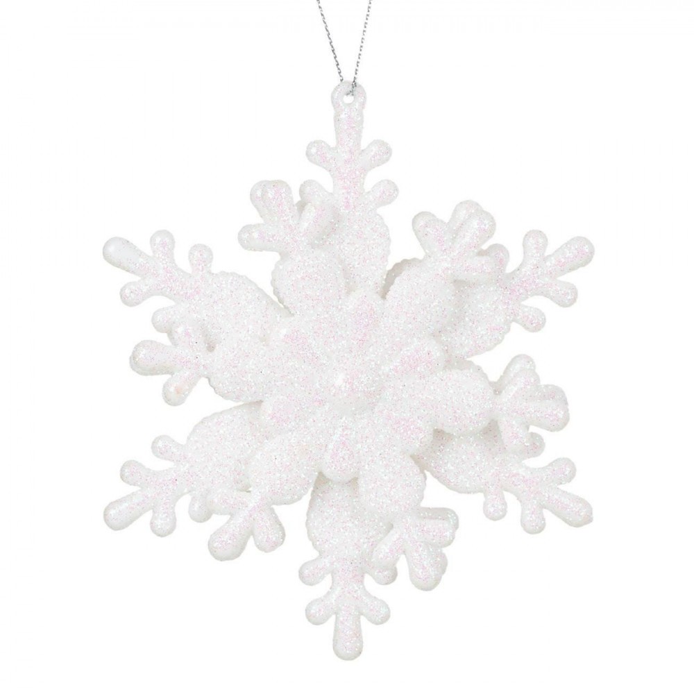 Ornament Brad Crăciun 3D, Fulg Zăpadă, Glitter Alb Holografic, 10x10cm, Plastic