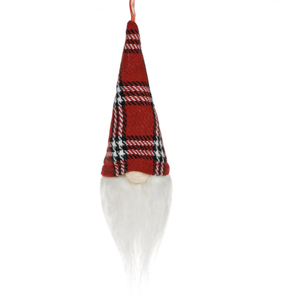 Ornament Brad Crăciun, Figurină Gnome, Căciulă Roșie/Gri, 5x11cm, Poliester