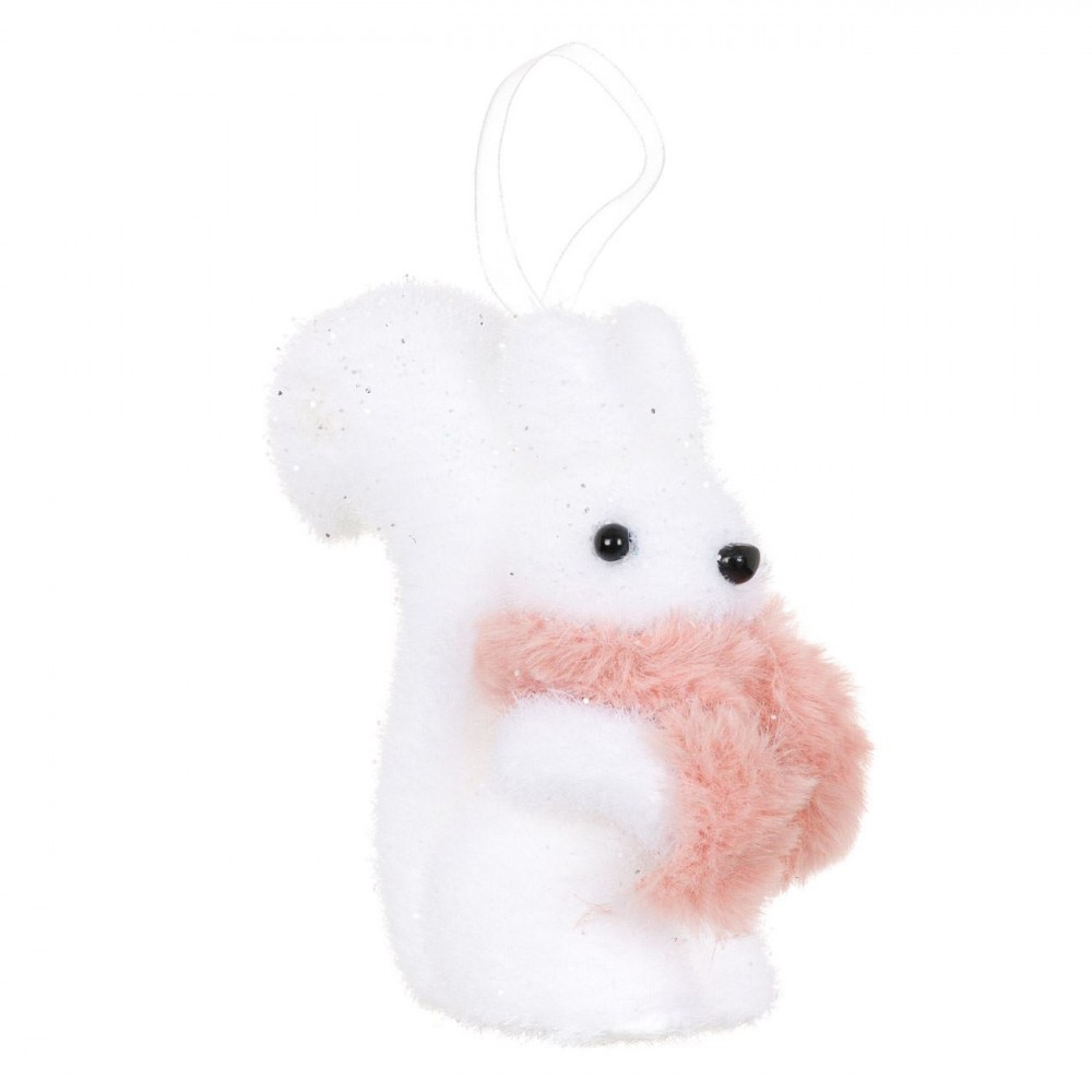 Ornament Brad Crăciun, Veveriță Spumă, Fular Roz, Alb, 11cm