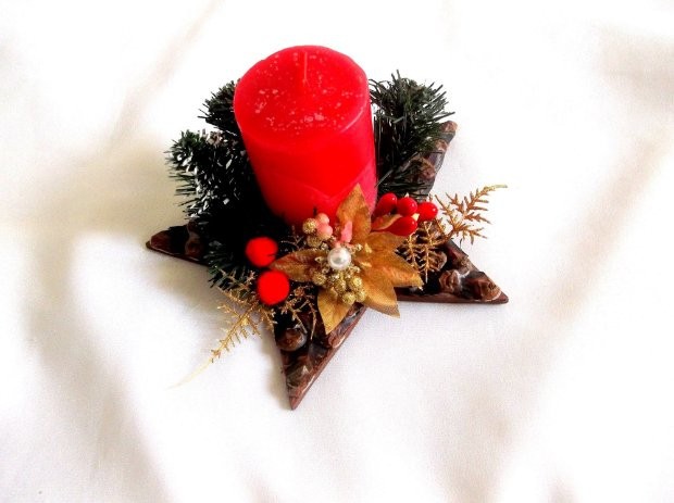 Ornament de brad cu lumanare si brad artificial, ornament de Craciun 40038. Produs lucrat manual, ornament de Craciun cu lumanare rosie si brad artificial.