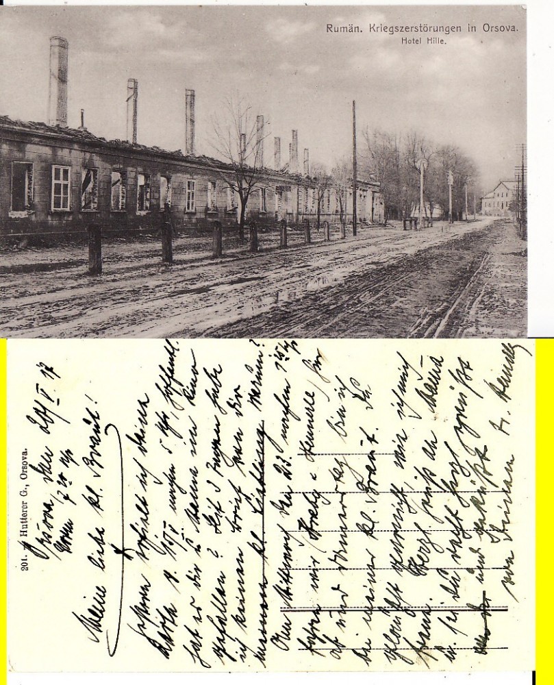 Orsova - Hotel Hille bombardat - WWI, tema militara,razboi, rara