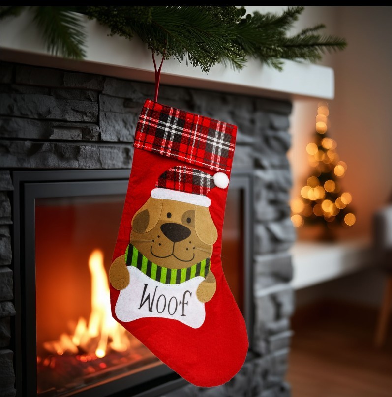Șosetă decorativă pentru animale – model câine – roșu/negru – 42 x 24 cm