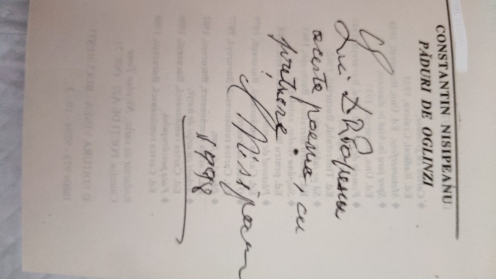 PĂDURI DE OGLINZI-CONSTANTIN NISIPEANU CU DEDICAȚIE ȘI SEMNATURA CĂTRE D. R. POPESCU-1998-AA.