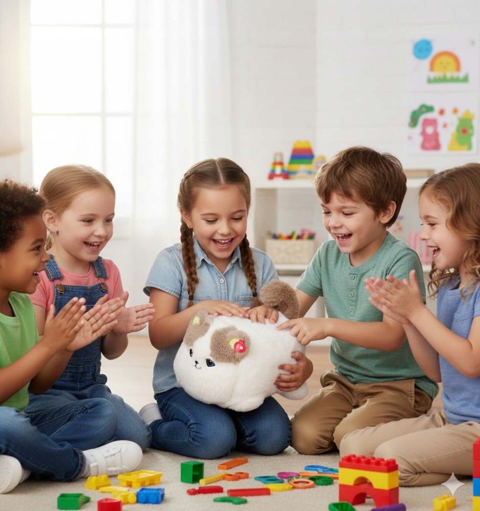 Această mascotă adorabilă reacționează ca un animal de companie adevărat – miaună, toarce, mișcă urechile și coada și chiar clipește din ochi. Jucăria dezvoltă simțurile, coordonarea și curiozitatea și implică copilul în jocuri interactive.