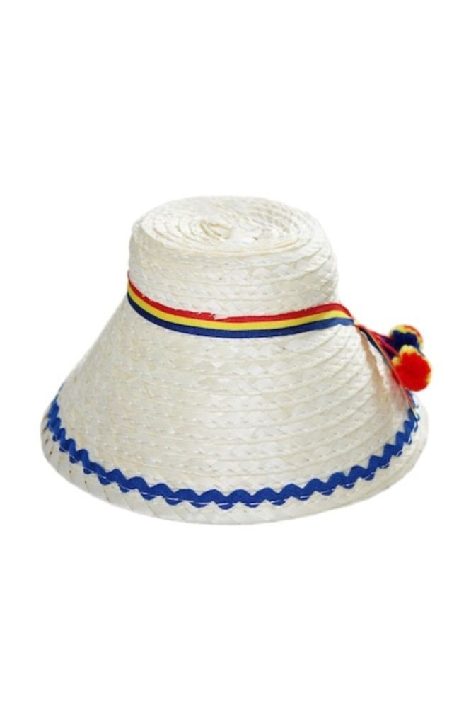 Pălărie tradițională cu ciucuri pentru copii.; Fabricată din paie și decorată cu motive românești, este perfectă pentru a completa o ținută tematică.; Vă rugăm să rețineți că culorile afișate pot varia în funcție de afișajul dispozitivului dvs., iar accesoriile precum panglici, dantele sau mici detalii pot diferi, dar acest lucru nu afectează aspectul general al produsului.