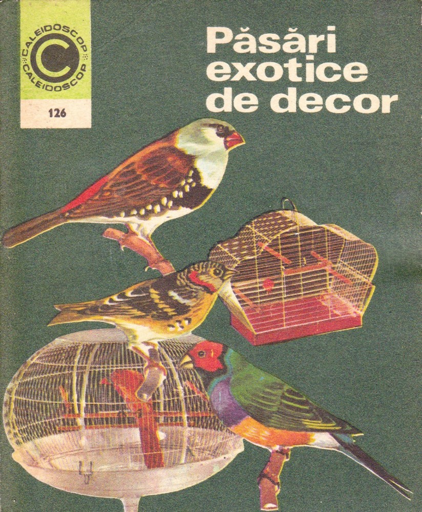 Păsări exotice de decor, de Ing. Ștefan Deleanu, editura Ceres, București, 1980, 194 pagini. Colecția Caleidoscop, nr. 126. Pentru București fac predare personală. Pentru alte localități 12 ron taxe poștale cu ramburs sau 7 ron colet simplu cu plata prin virament bancar. Pentru produse comandate în valoare de 60 ron trimit gratis colet simplu sau 7 ron cu ramburs, iar la 110 ron comanda expediez gratis cu ramburs.