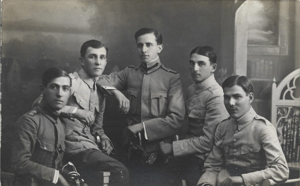 P1492 Sublocotenenți români în uniforme model 1916 cu adaptări făcute pe front, unul dintre ei cu două însemne de rănit