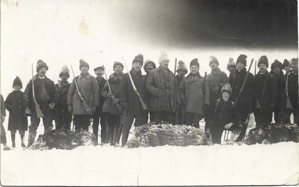 P1805N Vânători cu puști și trofee mistreț, România, perioada regalității