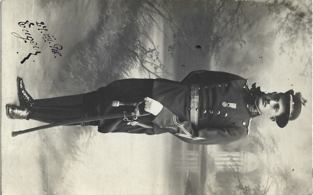 P2082N Locotenent român de vânători purtând medalia Avântul Țării, 1913, studio Rembrandt, Iași