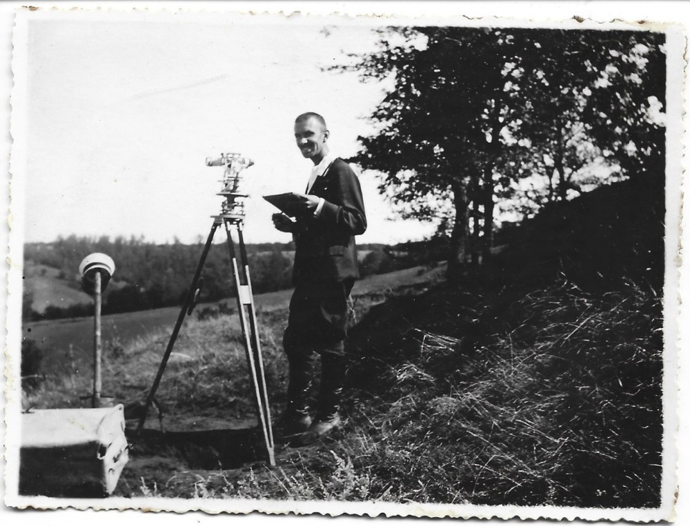 Inginer Theodor Bartlemanov făcând măsurători, anii 1930