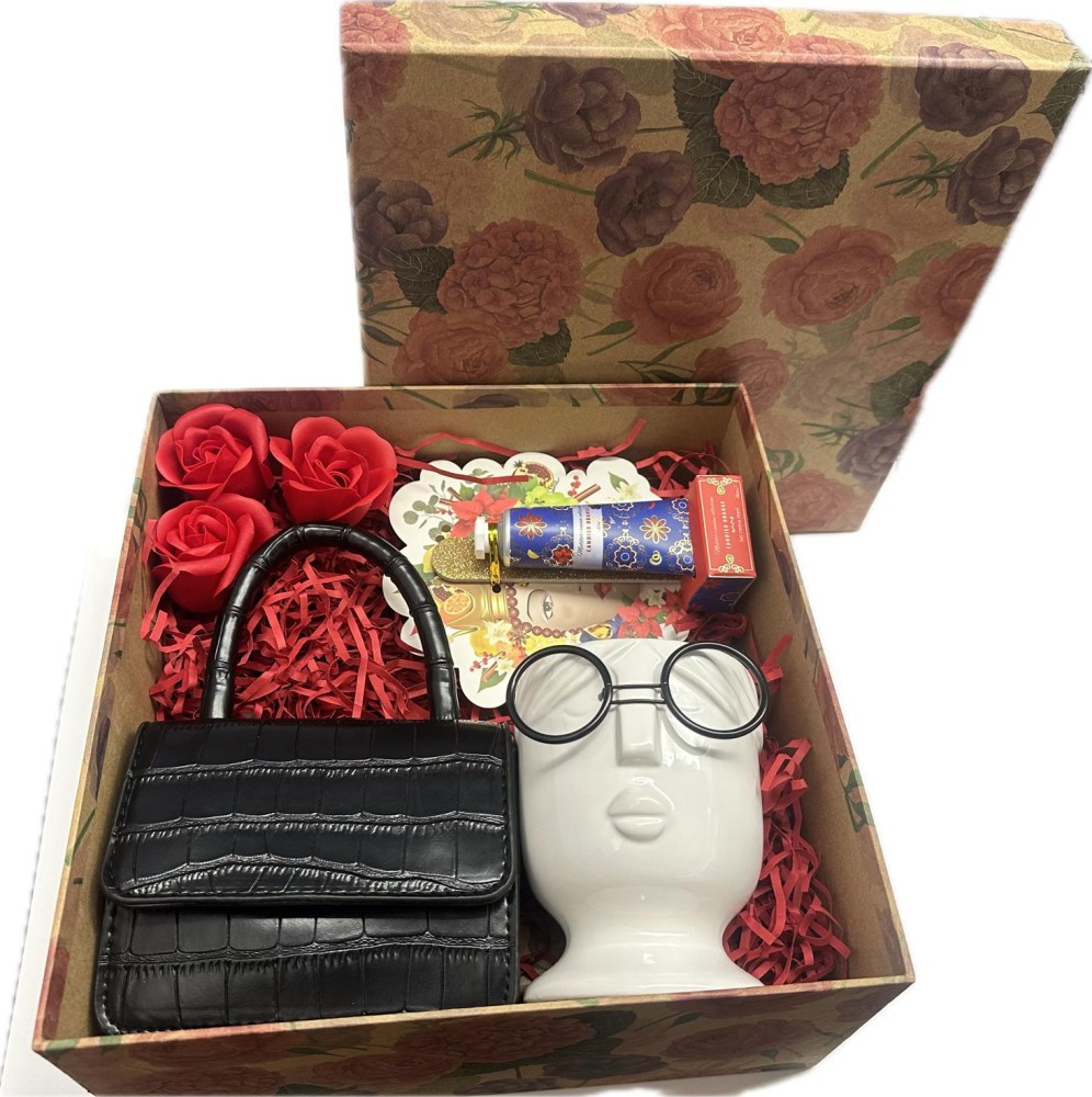 - Cutie carton model floral 24 x 24 x 12 cm + panglica iuta/ organza