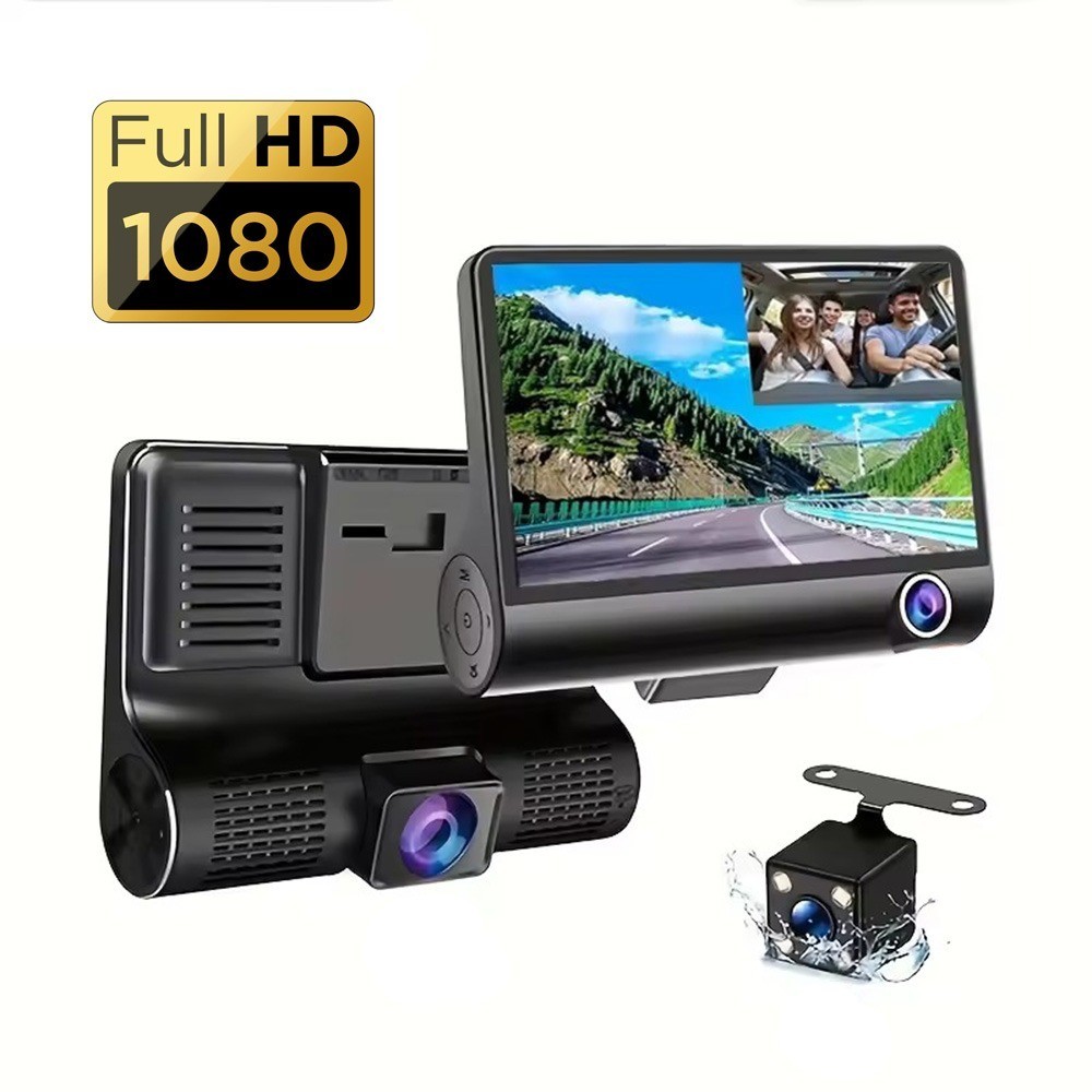 Pachet Camera auto DVR tripla, Full HD 1080P, Unghi de 170*, G Sensor, ecran 4", inregistrare in bucla