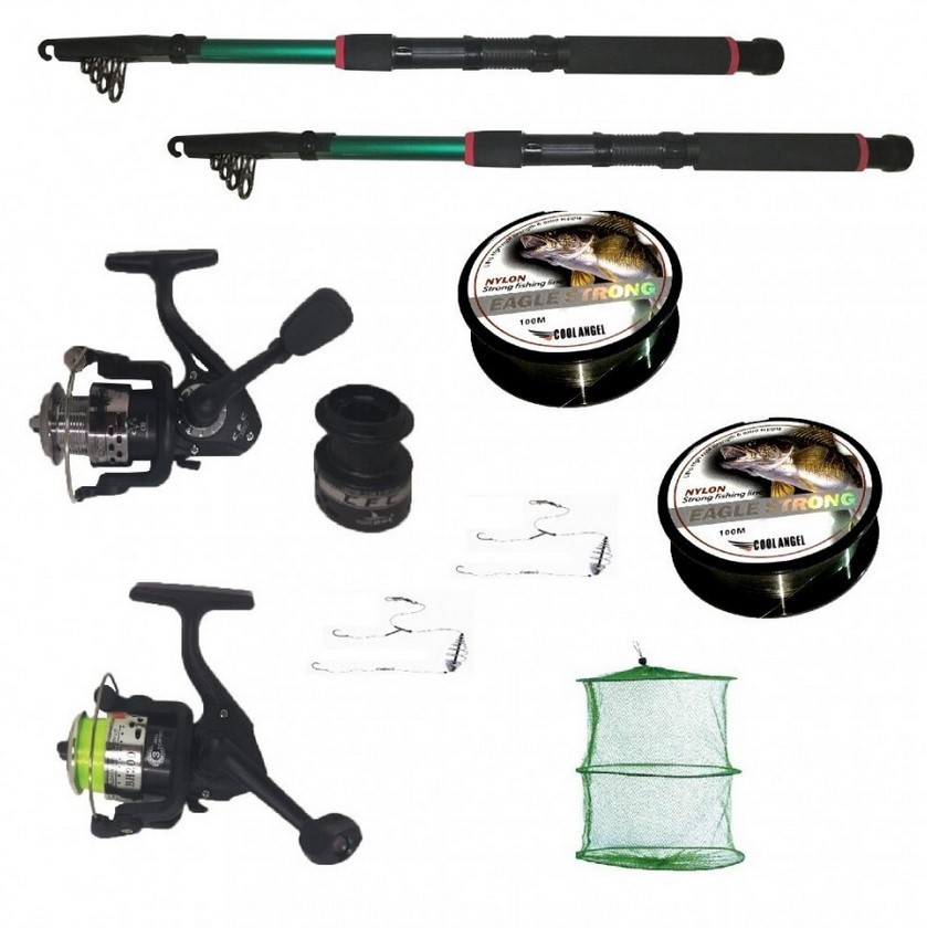 Pachet de pescuit cu 2 lansete 2,4m doua mulinete si accesorii