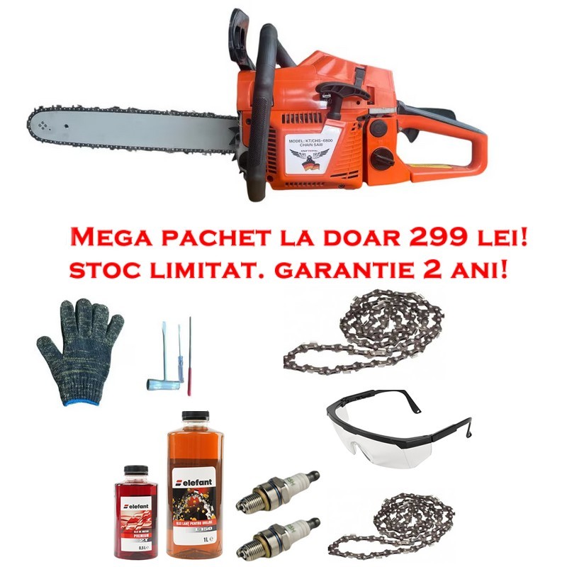 Kit complet: Tot ce ai nevoie pentru a folosi drujba imediat, fara