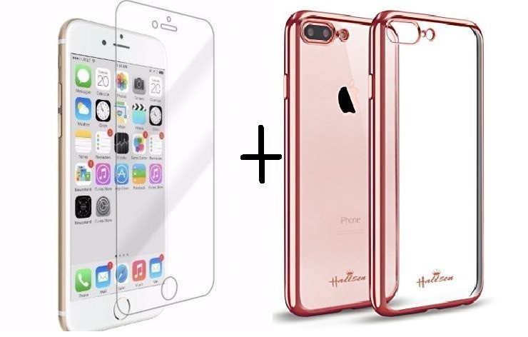 Pachet husa Elegance Luxury placata Rose-Gold pentru Apple iPhone 7 cu folie de protectie gratis
