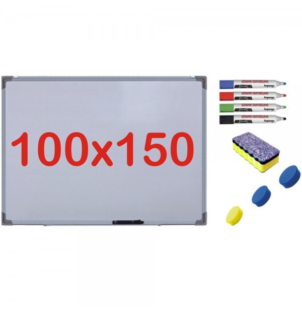 Pachet Tabla alba magnetica, 100x150 cm Premium + accesorii: markere, burete, magneti (7 ani Garantie)