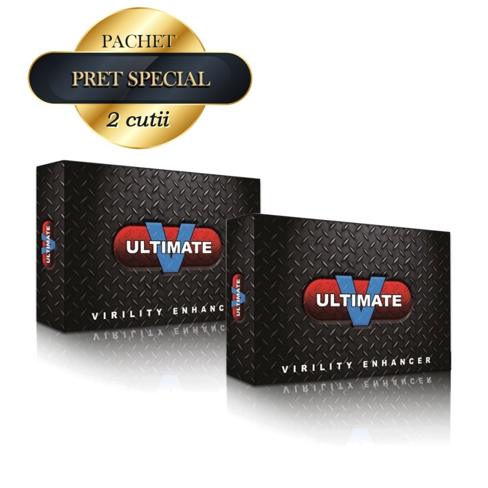 Pachet promotional ce contine 2 cutii de pilule pentru potenta Ultimate V 4. Acestea sunt un stimulent sexual pentru barbati, avand in compozitie extract de Maca dar si Tribulus Terrestris, 2 compusi naturali cu multiple beneficii pentru organism. Cele 2 ingrediente din compozitie ajuta la obtinerea de erectii mai ferme, pot imbunatati performanta sexuala si ajuta deopotriva la sporirea energiei si vitalitatii in general, oferind un tonus mult mai bun.Pentru a enumera pe scurt beneficiile pilulelor naturale Ultimate V, precizam urmatoarele avantaje oferite de catre ele:obtinerea de erectii puternice inca de la prima administrare;imbunatatirea vietii sexuale si o stare generala mai buna;cresterea vitalitatii si dorintei sexuale;efectul prelungit care dureaza cateva zile;puteti avea parte de rezistenta la partide consecutive.Radacina de Maca si Tribulus Terrestris (supranumit si Coltii babei) sunt surse bogate de nutrienti esentiali si au multiple beneficii pentru sanatate, cum ar fi cresterea libidoului si a functiei sexuale. Pe langa proprietatile afrodisiace, formeaza un mix natural apreciat pentru rolurile sale adaptogene, tonice, energizante si de sustinere a functiei cognitive. Mai exact, extractul de radacina de Maca, are rolul de a stimula tesutul moale din jurul penisului. In acelasi timp, ajuta la relaxarea arterelor avand ca efect accelerarea fluxului sanguin catre penis, astfel ca veti putea beneficia de erectii mai ferme si mai tari, dar si de un plus de energie in cadrul activatii sexuale. Totodata, Maca poate ajuta fertilitatea, atat la barbati, cat si la femei si poate contribui pozitiv atat la echilibrul hormonal cat si la un sistem imunitar puternic. Mod de administrare: Se recomanda sa luati 1 pilula cu 30 minute inainte de actul sexual. Nu este indicat ca intr-o perioada de 24 ore sa administrati mai mult de 1 pilula. Pachetul contine 2 cutii de Ultimate V 4, o cutie avand 4 pilule. | Cantitate: 8 capsule