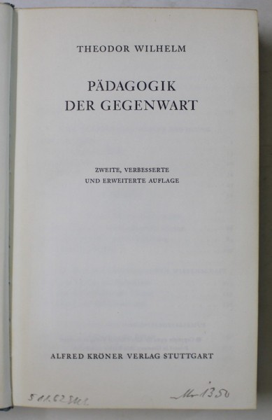 PADAGOGIK DER GEGENWART ( PEDAGOGIA PREZENTULUI ) von THEODOR WILHELM , 1960