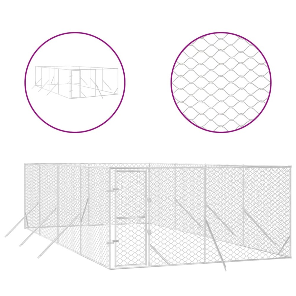Padoc de exterior pentru caini argintiu 4x8x2 m otel galvanizat