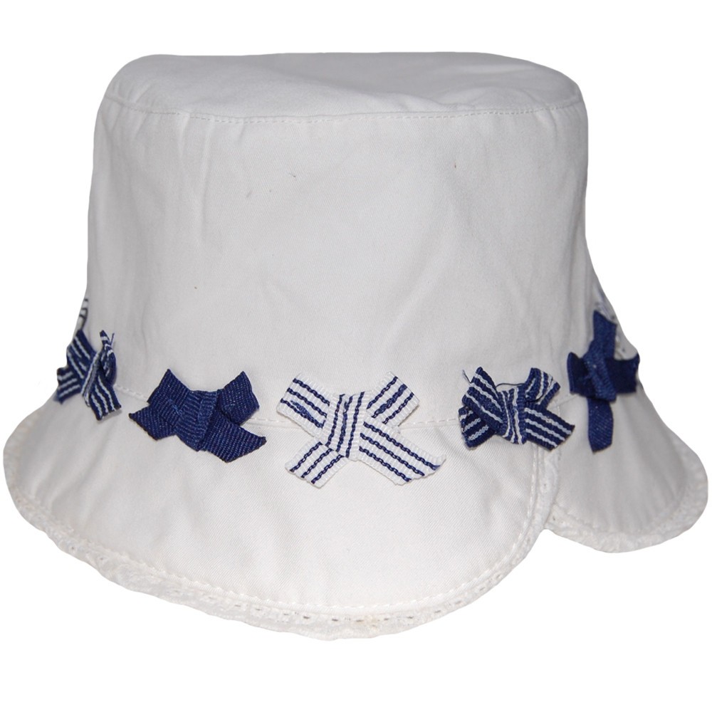 - Palarie alba pentru fete, cu fundite decorative bleumarin.
