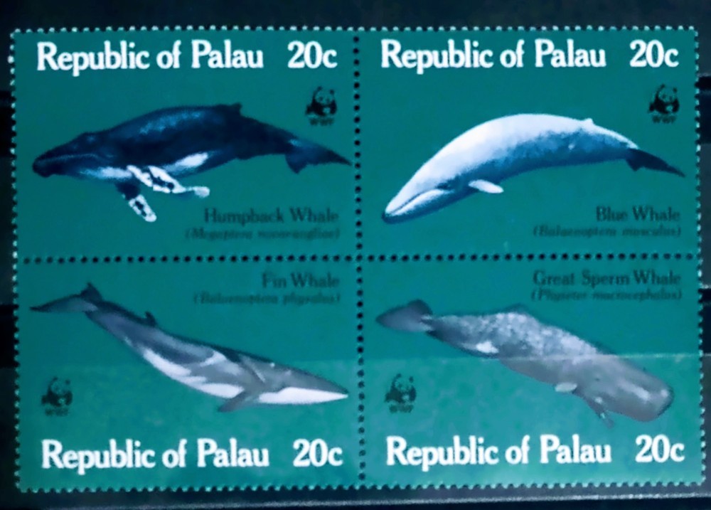 Palau 1983 fauna marina , balene , WWF serie nestampilata