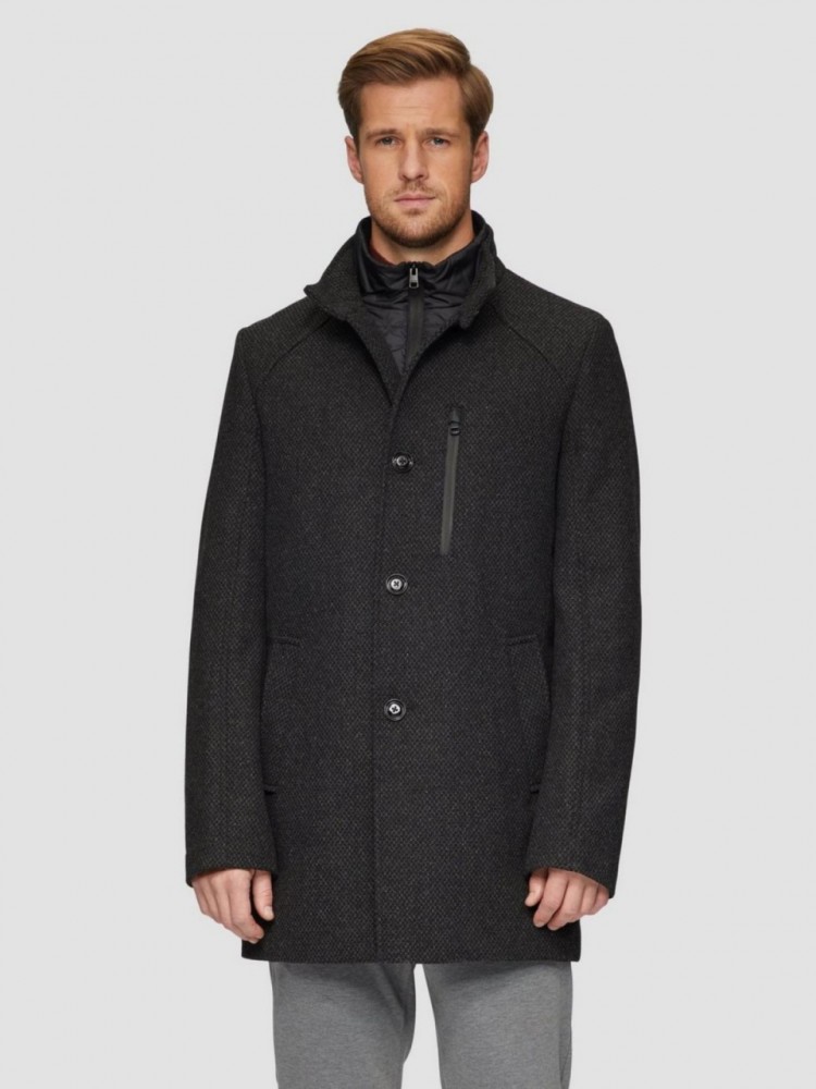 Palton barbati, cu dubla inchidere, 2 buzunare oblice, Regular fit, Negru, 48