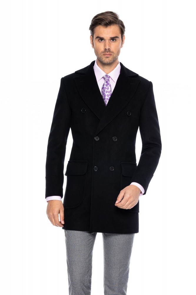 Paltonul negru la două rânduri de nasturi este conceput pentru bărbatul care dorește să îmbine stilul clasic cu un look modern și rafinat. Confecționat dintr-un amestec de 80% lână și 20% poliester, acesta oferă atât confort termic, cât și durabilitate pe termen lung. Croiala slim evidențiază silueta, iar designul double-breasted adaugă o notă de sofisticare. Paltonul este ideal pentru evenimente formale sau casual, adăugând o notă de eleganță oricărei ținute.