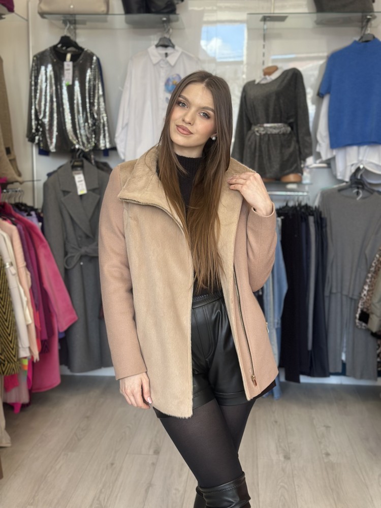 Palton scurt din lana de calitate Nuanta eleganta de bej Croiala feminina si moderna Sistem de inchidere cu nasturi Buzunare laterale practice Potrivit pentru diverse ocazii