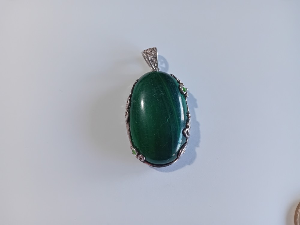 Pandant din argint cu malachit, marcaj 925, in stare buna, greutate 25.2 gr, cumparati cu incredere, orice produs se poate returna!