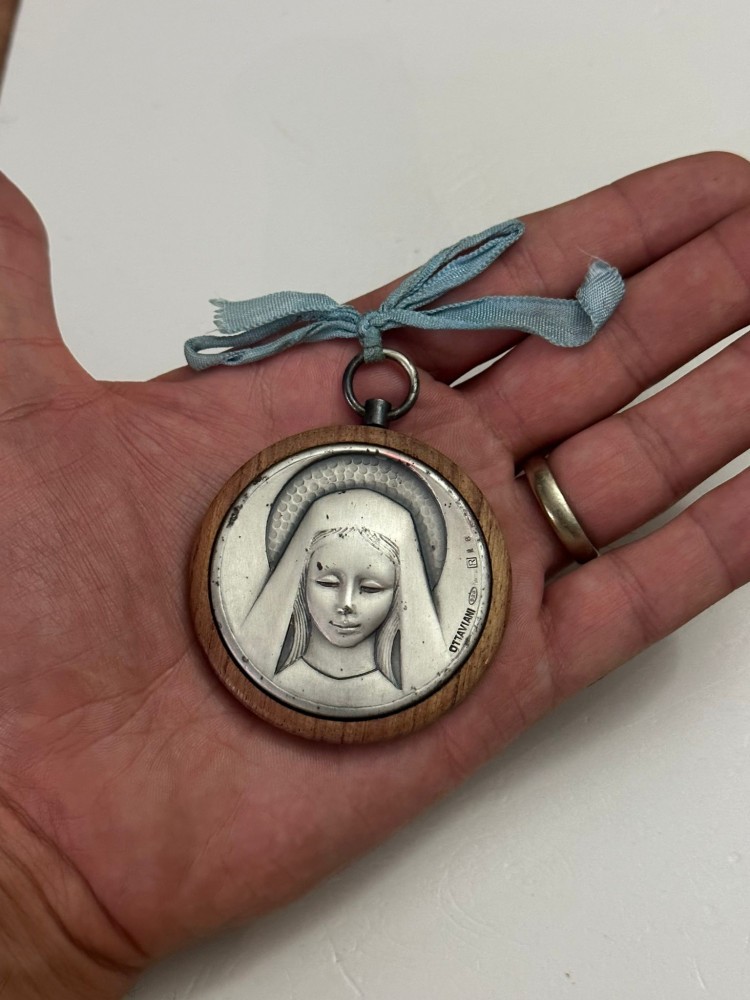 PANDANTIV ARGINT 925 + Lemn - Semnat OTTAVIANI - Iconita - Icoana Vintage !