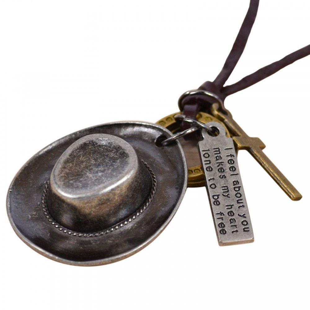 Pandantiv / Colier / Lantisor - Piele - Punk Style - Palarie - Argintiu