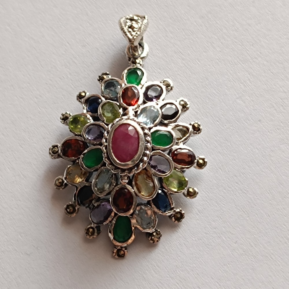 Pandantiv superb din argint , decorat cu o mulțime de cristale .