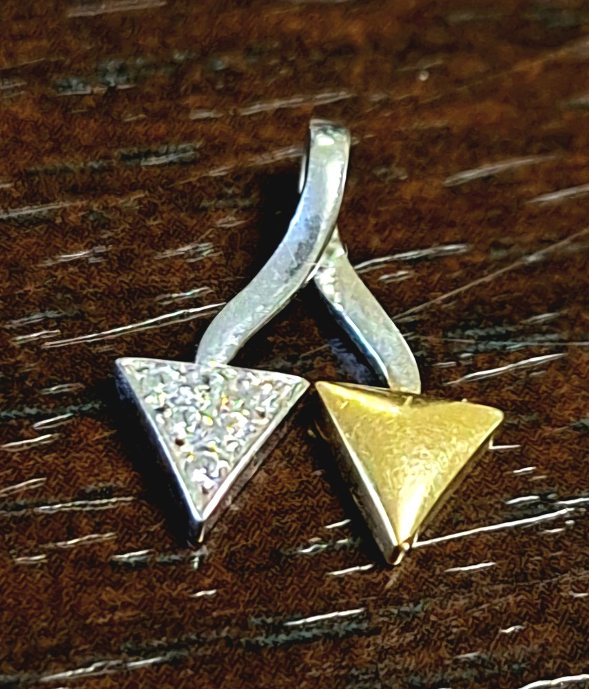 Pandantiv din aur alb si aur galben și zirconiu. Gramaj: 1.09 g