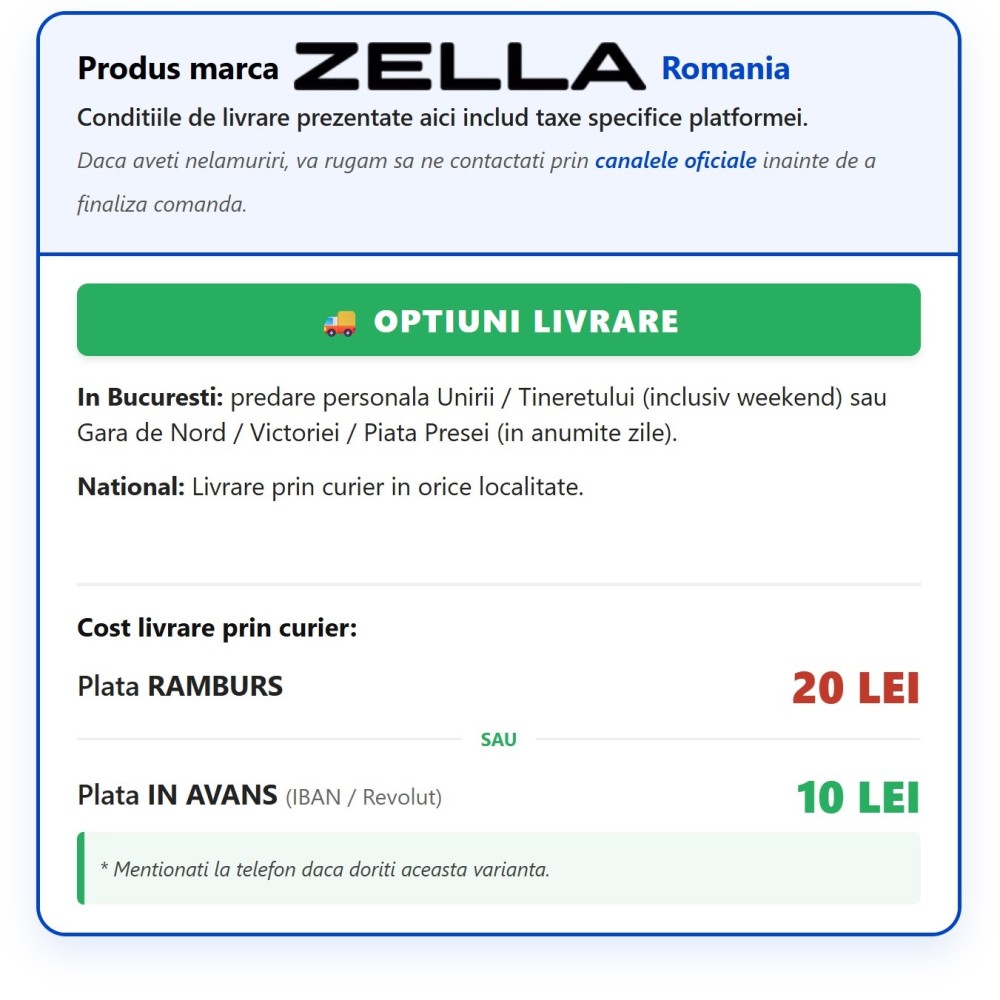 - - Alte detalii: Retur acceptat in conditiile Garantiei de Livrare