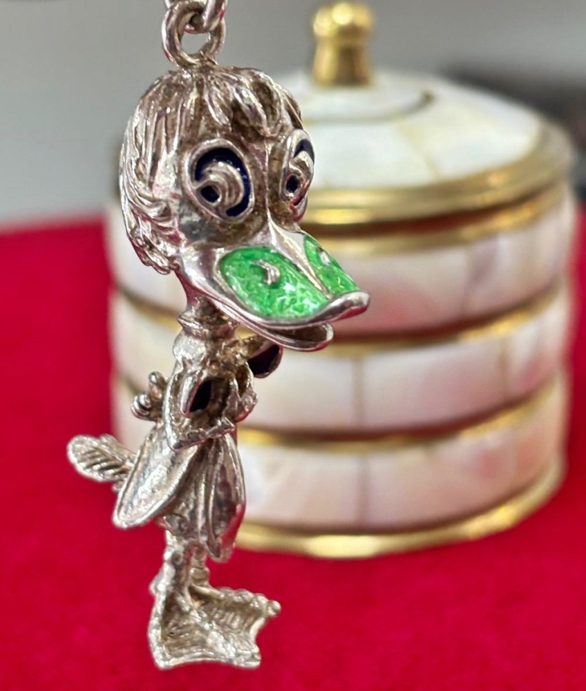 Pandantiv uimitor din argint cu model mobil Donald Duck emailat