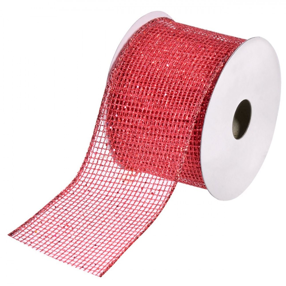 Panglică Decorativă, Model Plasă, Lungime 5m, Lățime 63mm, Roșu, Material Poliester