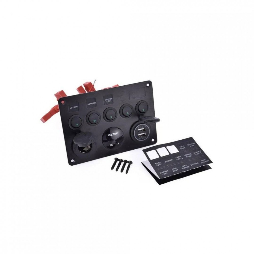 Panou cu 5 butoane luminoase diferite functii 12V 20A ,2xUSB,priza